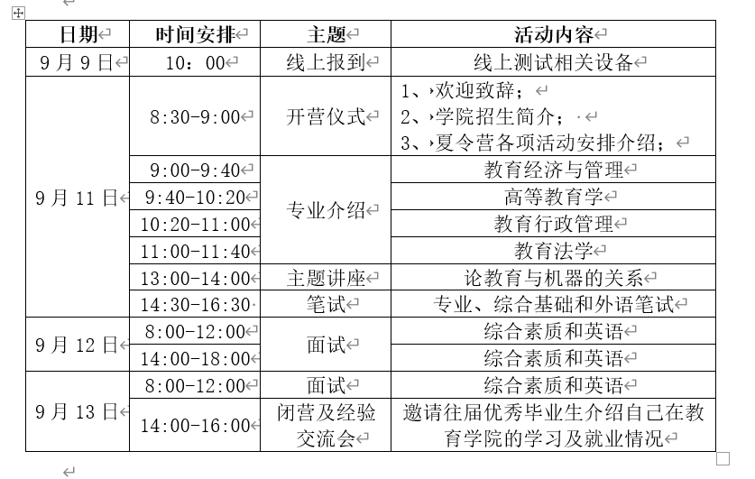 二、夏令营日程安排草案