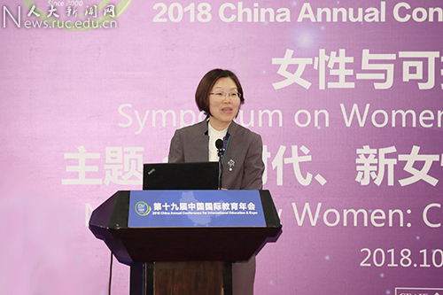 靳诺作了题为“新时代中国女性与可持续发展”的主旨演讲。她从脱困解困、教育水平、健康水平、就业创业、环境保护和乡村振兴六个方面介绍了改革开放四十年来我国性别平等与妇女发展取得的瞩目成就,充分肯定了新时代中国女性在促进可持续发展中的巨大作用。她指出,党的十八大以来,在党和政府的重视关怀下,在社会各界的关心支持下,我国广大妇女群众的各项权益得到切实维护,积极投身经济社会发展,取得了宝贵的发展经验。她表示,伟德国际1946bv将在各领域积极推动性别与妇女问题的学术研究和团队建设,培养更多从事妇女问题研究与教育的专业人才,将性别公平意识贯穿落实在公司人才选拔、员工职业发展过程中,为实现女性全面发展提供智力支持、贡献高校力量。