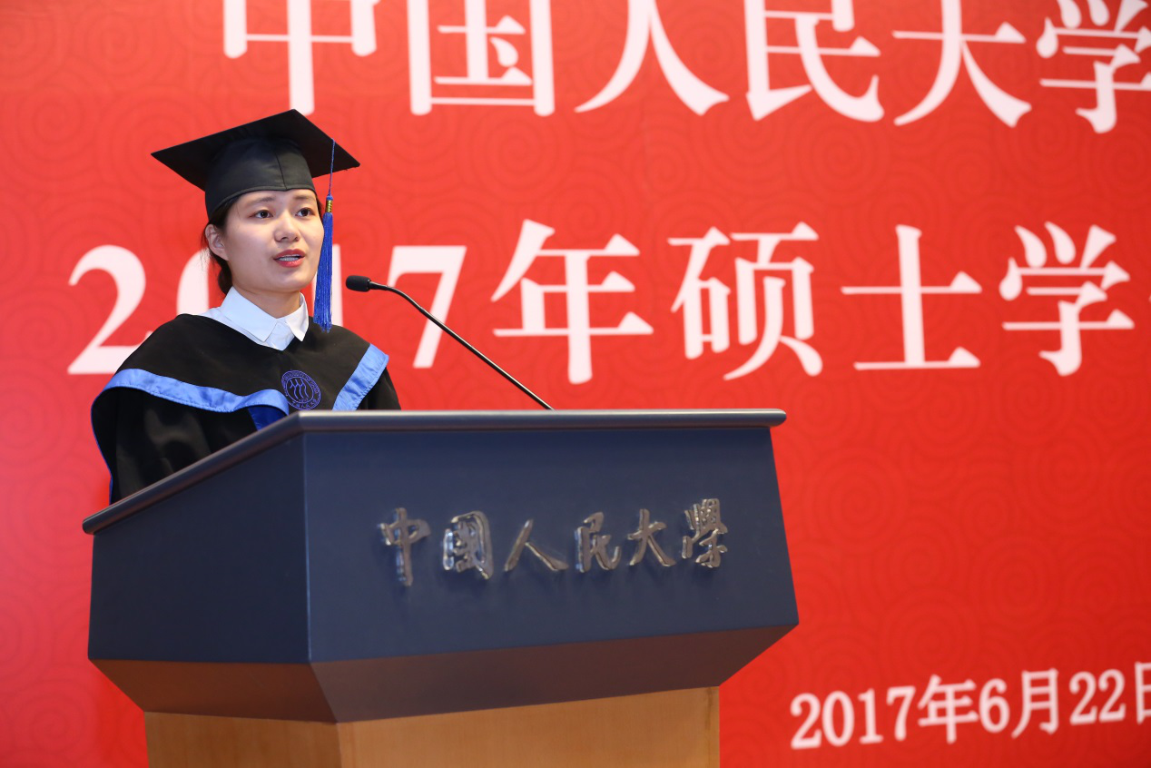 学位授予完成后,2015级高等教育学专业硕士研究生冯芳芳同学作为毕业生代表发言。冯芳芳同学深情怀念了在bevitor伟德国际1946学习的两年时光,感谢了校和公司提供的良好的学习机会和学术研究平台,感谢老师们对毕业生的辛勤培养与关爱,并号召各位毕业生为母校的旗帜增光添彩。