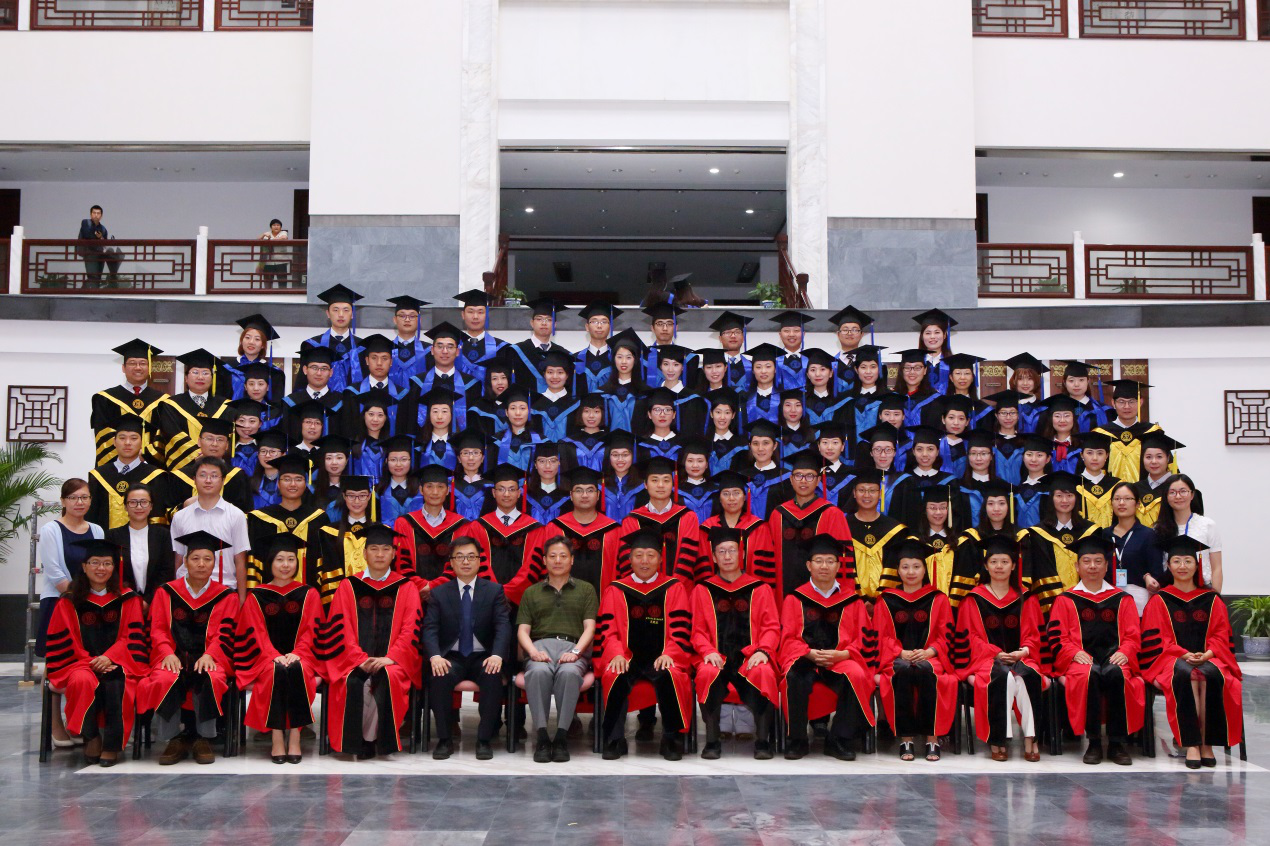 仪式结束后,吴晓球副董事长与公司参加学位授予仪式的师生在国学馆大厅合影留念。