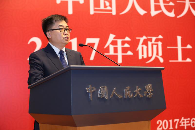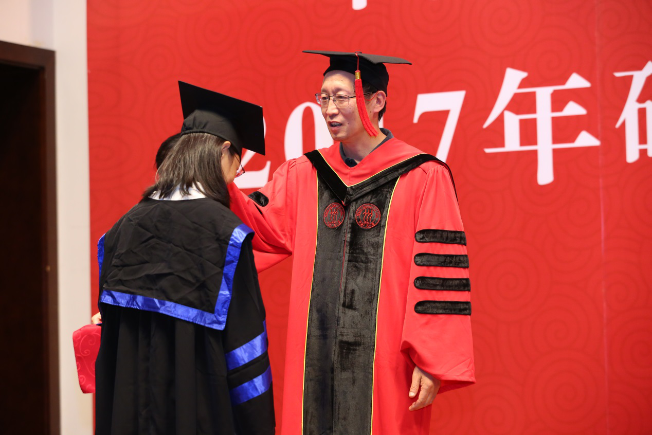 毕业生代表发言后,2015级硕士研究生班班主任叶阳永老师作为教师代表致辞,他风趣幽默地回顾了和毕业生们共度的两年时光,并向毕业生们分享了自己的人生感悟。他勉励大家,人生有不同的选择,每一种都将精彩,人生的幸福有无数种可能,每一种都很美好,并祝福各位毕业生能找到适合自己的路,前程似锦。