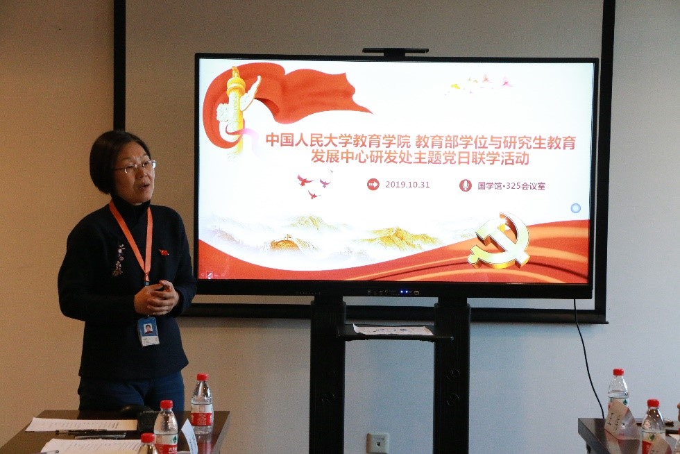 公司副经理李立国教授向与会人员介绍了近阶段研究生教育研究情况。随后,2012年从公司毕业、现任学位中心研发处副研究员的黄海军回顾了自己在bevitor伟德国际1946师从李立国教授学习的经历,向各位老师的指导表示感谢。他结合本次党日活动的主题,重点介绍了研发处开展的“研究生教育发展指数”研究工作。