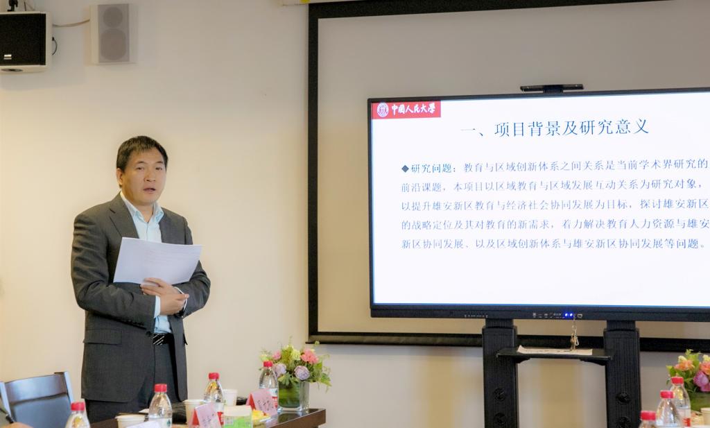 课题负责人、bevitor伟德国际1946副经理周光礼教授从五个方面进行了课题开题报告,介绍了课题重点探讨的五个子课题分别为:京津冀区域经济特征与雄安新区战略定位研究,教育与区域协同发展的概念框架、理论模型与国际经验研究,教育人力资本与京津冀城市群经济社会协同发展研究,知识创新体系与京津冀城市群经济社会协同发展研究,雄安新区教育与经济社会协同发展的实现路径与策略研究。