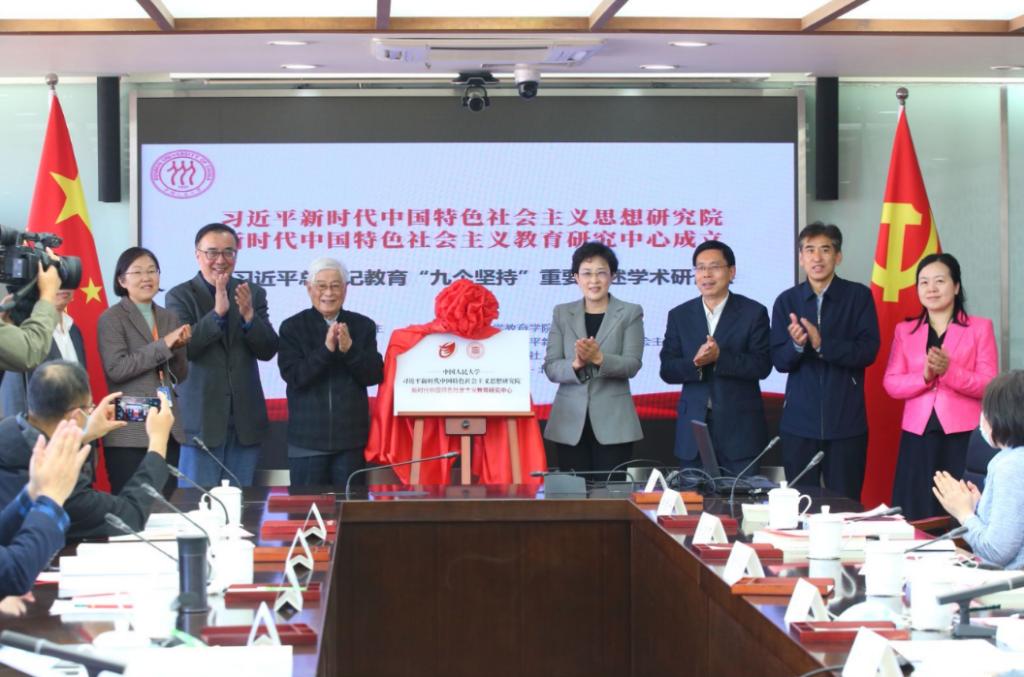 随后,靳诺书记、顾明远教授、谢维和教授共同为伟德国际1946bv新时代中国特色社会主义教育研究中心举行揭牌仪式。