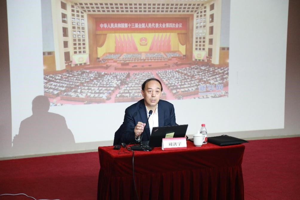 周洪宇首先介绍了本次全国人大会议的总体情况,并在此基础上重点介绍了习近平总书记两会期间先后到内蒙古代表团,医药卫生界、教育界联组会和青海代表团参加审议、讨论时,围绕教育问题的系列讲话精神。他指出,党的十八大以来,以习近平同志为核心的党中央高度重视教育公平问题,明确提出要不断促进教育发展成果更多更公平惠及全体人民,以教育公平促进社会公平正义。习近平总书记关于教育公平的一系列重要论述,是习近平教育思想的重要组成部分,也是其教育思想的核心内容,是我们在新形势下做好教育工作的重要指南。深入学习习近平总书记关于教育公平的重要论述,深刻领会其重要意义和精神实质,对于我们办好让人民满意的教育,让每个人都有人生出彩的机会,实现中华民族伟大复兴的中国梦,具有重要的理论意义和实践意义。