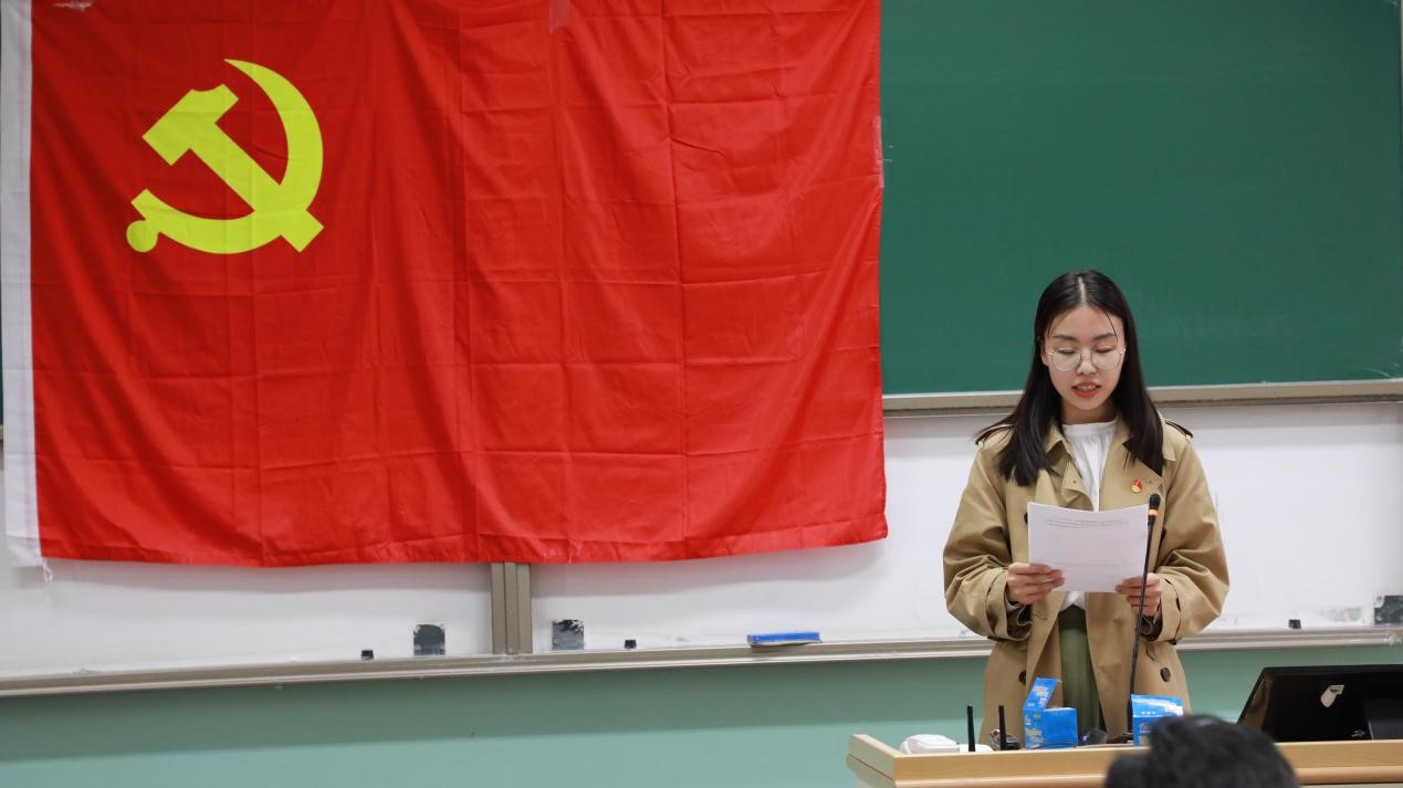 2020级硕士生党支部组织委员周延军代表员工党员进行表态发言。她认为,员工党员作为老员工中的先进群体,更应该通过这次党史学习教育,重温党的百年奋斗历史,自觉做共产主义远大理想和中国特色社会主义共同理想的坚定信仰者和忠实实践者,成为具有远见和深度的大国公民。员工党支部将紧跟部署,全面开展党史学习教育,将党史教育化作政治生活的重要部分,开展具有员工党支部特色的学习活动,将党史学习教育的实际效果落实在支部日常建设的实际行动中,做到学有所思、学有所悟、学有所得。