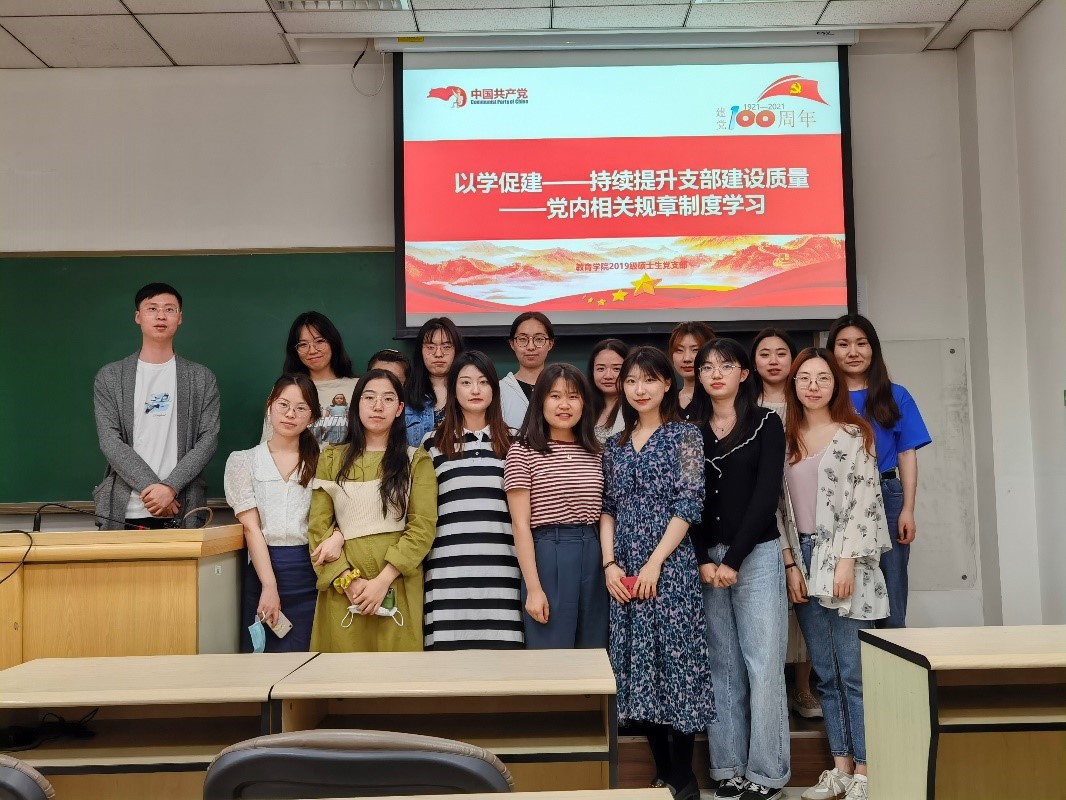 为持续加强党支部标准化、规范化建设,迎接建党百年华诞,按照公司、公司工作要求,5月12日晚,2019级硕士生党支部在明德新闻楼0102开展“以学促建——持续提升支部建设质量”主题党日活动,支部21名党员参加活动,其中4人通过腾讯会议线上参与。