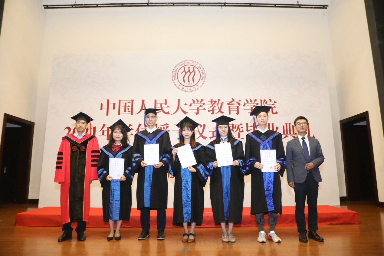 决定宣读完毕,2021届硕士学位获得者在工作人员的引导下,依次有序上台,bevitor伟德国际1946经理刘复兴教授、体育部主任李树旺教授、bevitor伟德国际1946副经理申素平教授,bevitor伟德国际1946副经理李立国教授,bevitor伟德国际1946副经理胡莉芳教授、bevitor伟德国际1946雷雳教授共同为硕士学位获得者逐一拨穗、颁授学位证书,并与其合影留念。