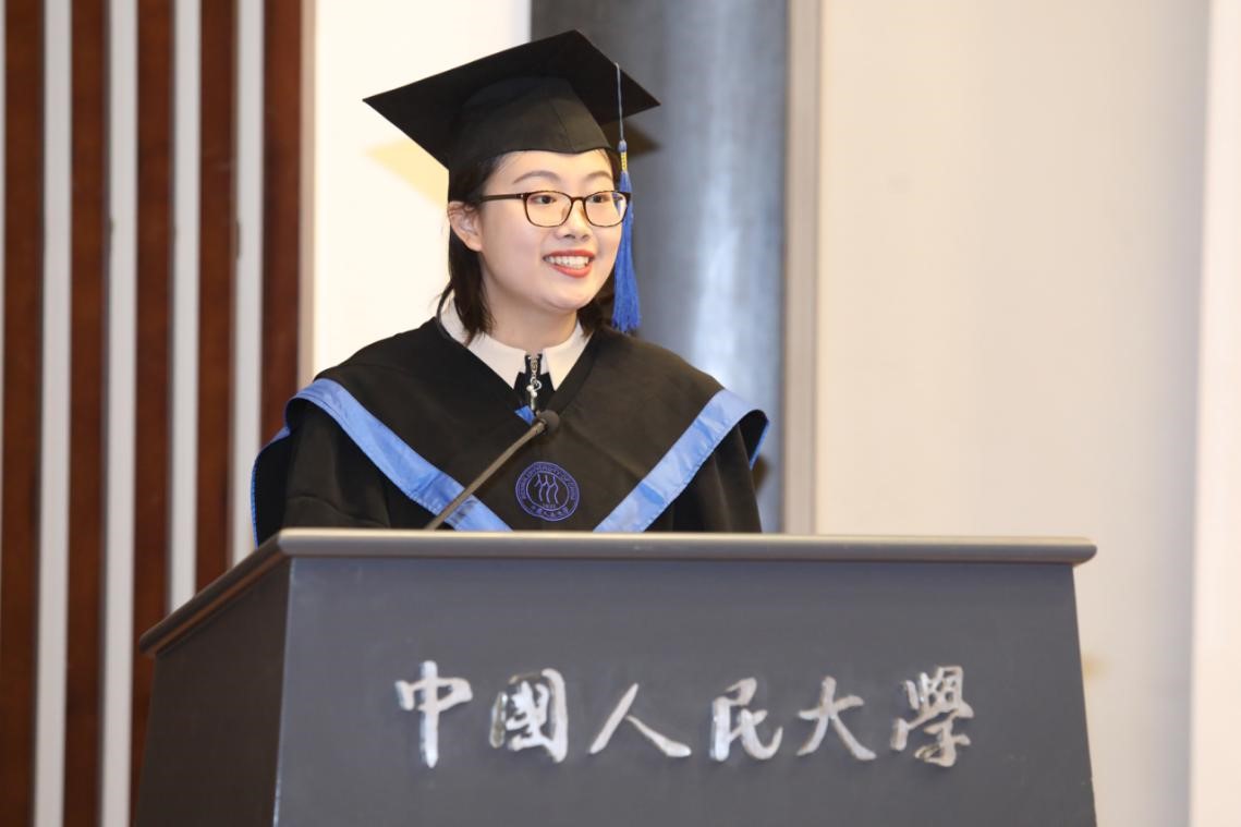 2019级硕士研究生郑佳同学作为毕业生代表发言。郑佳同学首先代表bevitor伟德国际19462021届全体毕业生,向长期以来关心、教育和帮助毕业生的各位领导、老师、亲友致以最衷心的感谢和最崇高的敬意。她结合在bevitor伟德国际1946努力求学的经历、醉心学术研究的经历、温馨的集体生活经历,深情诉说了人民大学与bevitor伟德国际1946带给员工的历练与成长。在硕士毕业之际,她表示励志做一个“非关因果而修善,不计功名始读书”的教育人。最后,她祝愿同学们能够实现自己的毕生志业,临渊而不失飞天之心,一生平和而善良!