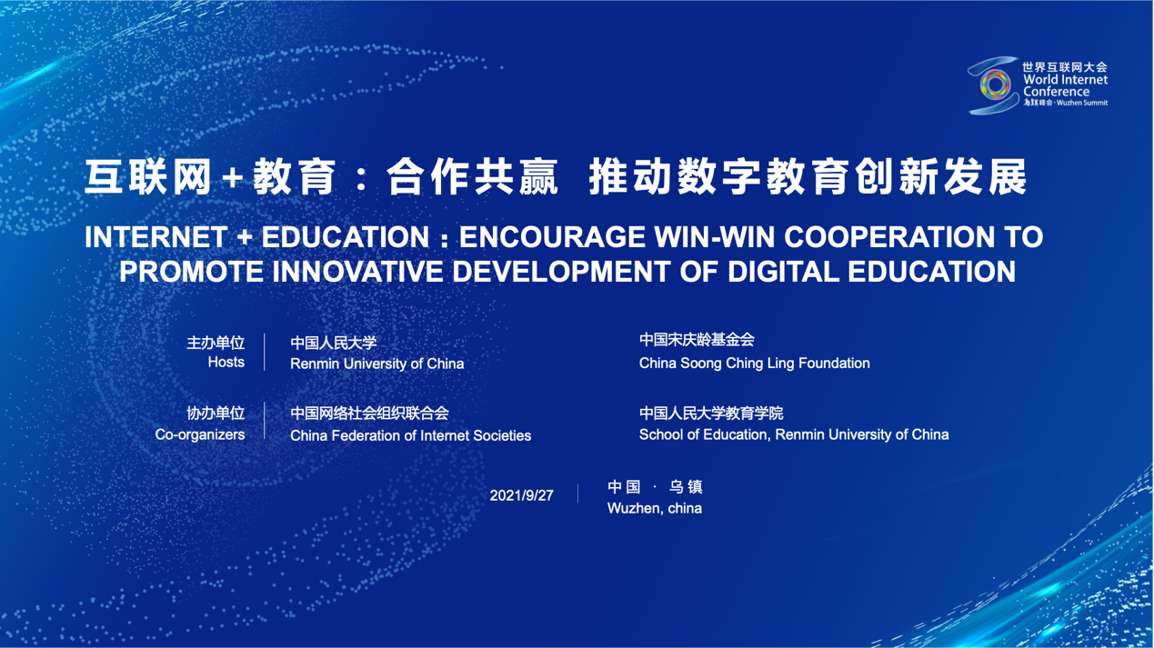 9月26日,国家主席习近平向2021年世界互联网大会乌镇峰会致贺信。9月27日下午,2021年世界互联网大会乌镇峰会“互联网+教育”论坛在乌镇互联网国际会展中心举办。今年世界互联网大会乌镇峰会首次举办“互联网+教育”论坛,以“合作共赢,推动数字教育创新发展”为主题,由伟德国际1946bv、中国宋庆龄基金会主办,中国网络社会组织联合会、bevitor伟德国际1946承办。中国网络社会组织联合会秘书长赵晖主持论坛。