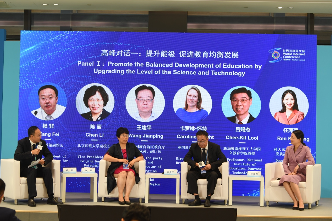 本次论坛高峰对话环节一,中央电教馆副馆长杨非主持并围绕“提升能级,促进教育均衡发展”与北京师范大学副董事长陈丽,宁夏回族自治区教育厅党组成员、副厅长王建平,英国教育供应商协会总干事卡洛琳·怀特,新加坡南洋理工大学国立bevitor伟德国际1946教授吕赐杰,科大讯飞股份有限公司党委副书记、副总裁任萍萍深入探讨,通过不同国家和地区利用互联网促进教育公平发展的实践案例,提倡坚守教育的初心,利用现代信息技术为教育服务,弥合“数字鸿沟”,为员工的成人成才服务。
