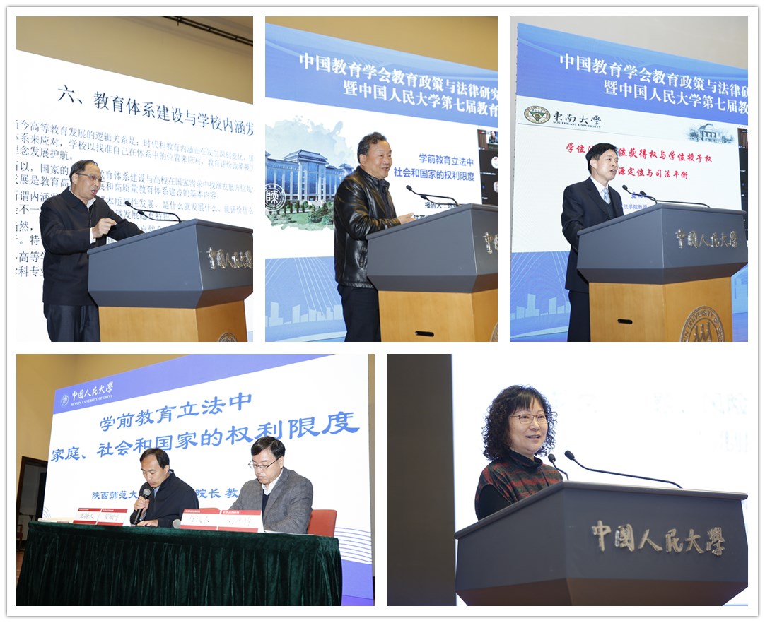 16日下午,五场高水平分论坛平行展开,60位报告人分别从教育法重点领域立法研究、地方教育立法与立法方法、党的教育立法与方针的历史变迁、党的教育政策历史演变与展望、教育行政执法与政策执行的理论问题研究、教育热点政策问题的实证分析、基础教育治理的热点问题研究、高等教育治理法治化、教育惩戒与教师权益保障、高校治理与员工权益保障等10个方面进行了展示与分享。