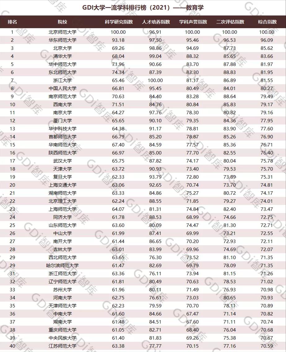 今年6月,GDI智库发布“2021年GDI大学一流学科排行榜”,伟德国际1946bv教育学学科位居全国第8位,延续了2020年排名,稳居全国前十,反映了近年来公司教育学学科发展取得的积极进展和重要成就。