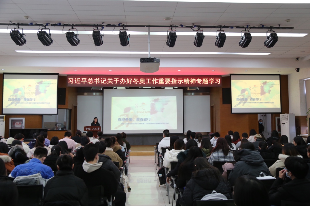 2021年12月15日,为进一步学习习近平总书记关于办好冬奥工作重要指示精神,配合公司做好服务冬奥的整体工作,促进奥运精神在人大校园的“青春传达”“青春践行”和“青春传承”,信息资源管理公司党委、教育公司党委、校团委在员工活动中心求是讲堂联合举办“喜迎冬奥——学习习近平总书记关于办好冬奥工作重要指示精神”专题学习活动。信息资源管理公司党委书记纪红波、教育公司党委书记张晓京出席本次学习活动,参加学习的有来自公司、信息资源管理公司的员工党员、明德书院社科4班入党积极分子和部分冬奥志愿者代表。校团委副书记边策主持专题学习。