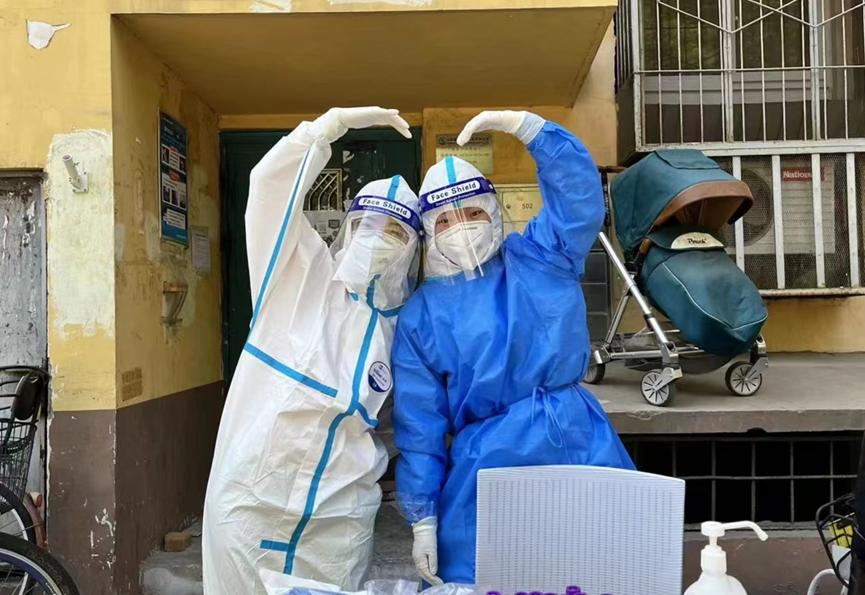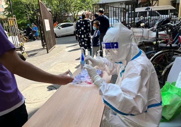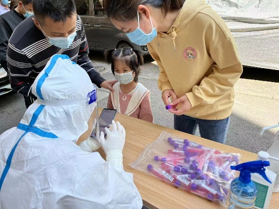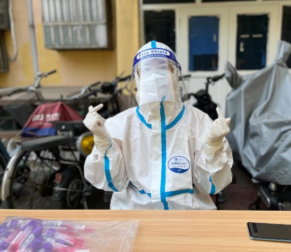 由于核酸检测工作人手紧缺,我被安排成为了负责核酸检测信息录入的志愿者。社区工作人员耐心仔细地为我们进行了培训讲解和操作示范。5月3日,我第一次穿上了医用防护服,成为了一名“大白”。核酸检测持续了两个多小时,脱下防护服的时候能感觉到自己全身的衣物都湿透了,此时也更加深刻地体会到了“大白们”顶着太阳身着防护服工作的汗水与艰辛。社区居民们也非常理解工作人员们的不容易,大家积极配合防疫工作,尊老爱幼、互相礼让又彼此关切的场面让我倍加感动。