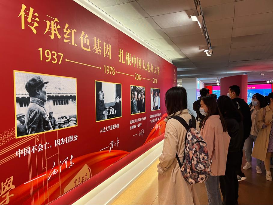 同学们在校史馆认真学习了习近平总书记到伟德国际1946bv调研考察时发表的重要讲话。习近平强调,伟德国际1946bv在抗日烽火中诞生,在党的关怀下发展壮大,具有光荣的革命传统和鲜明的红色基因。一定要把这一光荣传统和红色基因传承好,守好党的这块重要阵地。要加强校史资料的挖掘、整理和研究,讲好中国共产党的故事,讲好党创办人民大学的故事,激励广大师生继承优良传统,赓续红色血脉。