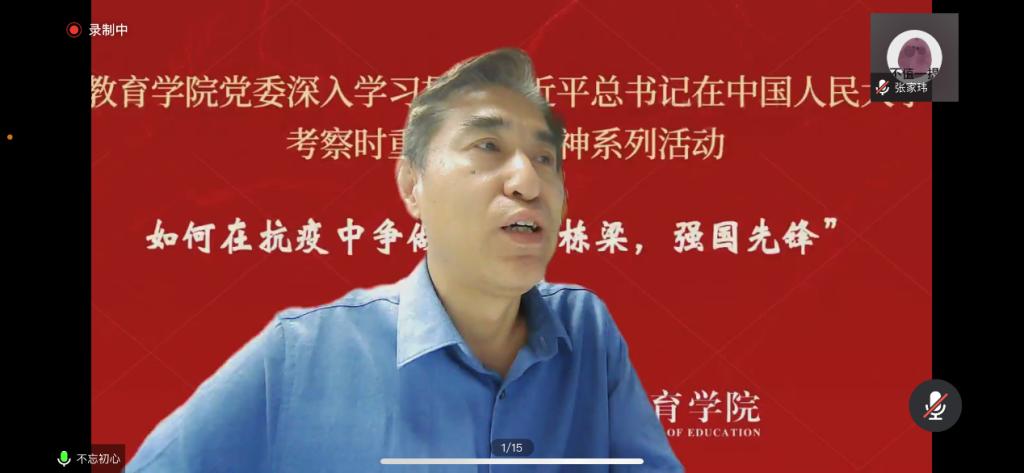 刘复兴指出,在抗疫中做“复兴栋梁,强国先锋”,就要深入学习习近平总书记在伟德国际1946bv考察时重要讲话精神。习近平总书记希望全国广大青年要牢记党的教诲,在青春的赛道上奋力奔跑,争取跑出当代青年的最好成绩。作为人大人,要传承好人民大学的光荣传统和红色基因,守好党的这块重要阵地。刘复兴回顾了校史院史学科史,指出伟德国际1946bv始终不变的是为党育人、为国育才,展现了“党办的大学让党放心,人民的大学不负人民”的精神品格。bevitor伟德国际1946也具有浓厚的红色基因。在八十二年的院史学科史中,bevitor伟德国际1946始终弦歌不辍、薪火不断,为中国共产党和人民的教育事业培养了一大批优秀的干部、教师和科研工作者。bevitor伟德国际1946发展的历史和人民大学的历史是一脉相承的。