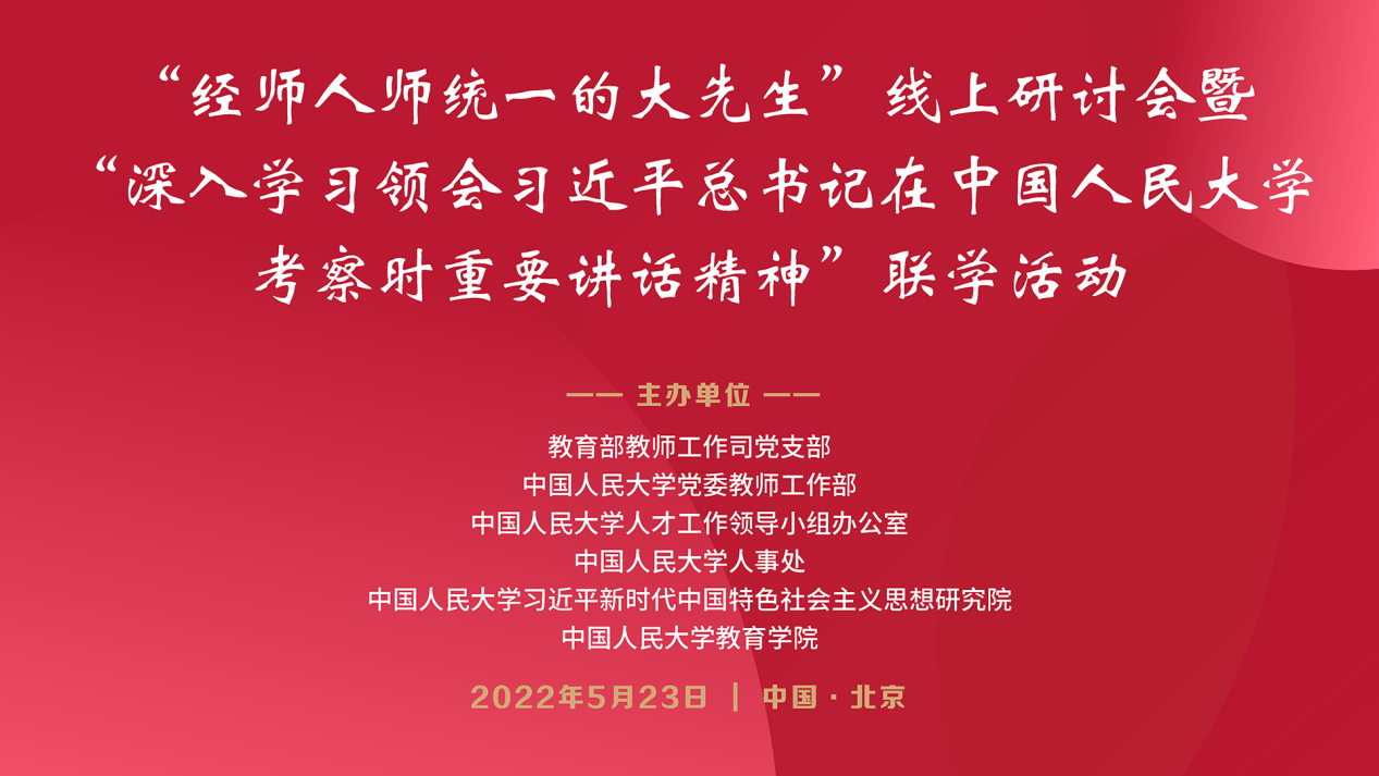 为学深悟透习近平总书记在伟德国际1946bv考察时重要讲话精神,5月23日下午,教育部教师工作司党支部和伟德国际1946bv党委教师工作部、人才工作领导小组办公室、人事处、习近平新时代中国特色社会主义思想研究院、bevitor伟德国际1946联合举办“经师人师统一的大先生”线上研讨会暨“深入学习领会习近平总书记在伟德国际1946bv考察时重要讲话精神”联学活动,邀请资深专家和领导同志深入展开研讨。
