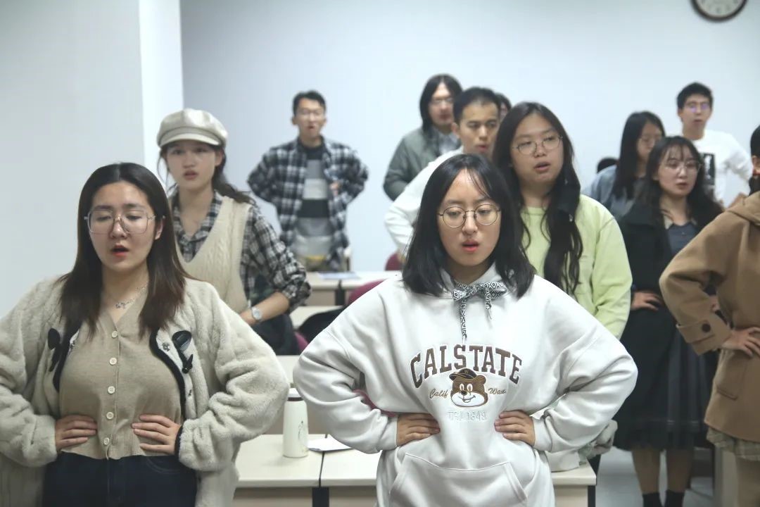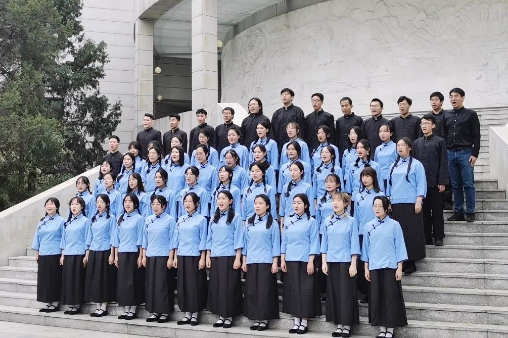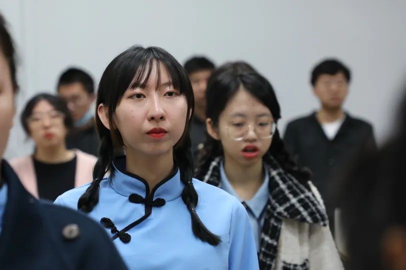 10月30日下午,“育见文学”联队在博物馆东门进行“一二·九”合唱音乐节初赛视频录制。在正式录制前,同学们在教室热身开声,紧张而充满活力地为录制做准备。备场结束后,同学们身着民国风格服装在博物馆前唱响《陕北公公司歌》。寒风猎猎,秋雨迷濛,同学们斗志昂扬、充满激情的演唱让人仿佛回到了1937年,成仿吾老董事长在看到毛泽东同志写给陕公的题词后心潮澎湃,在窑洞昏暗的油灯下创作出《陕北公公司歌》歌词。85年后的今天,一群满怀理想与热血的青年再次唱响这首歌曲,歌声嘹亮,彰显人大人赓续红色血脉、传承革命精神的决心。