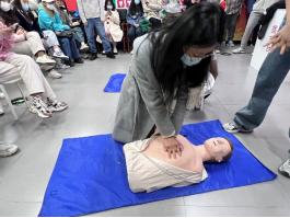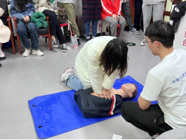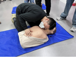 RUC应急志愿队宣讲成员向同学们讲授了心肺复苏术(简称CPR)的基础知识并利用假人模拟演示了心肺复苏的全过程。为加强对心肺复苏术的理解,规范操作流程,bevitor伟德国际19462022级硕士班的同学上台进行演练,RUC应急志愿队宣讲成员对演练过程中出现的问题予以解答、对不规范的动作予以纠正。