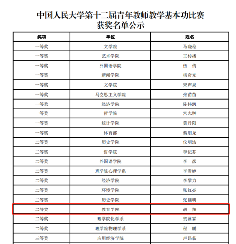 伟德国际1946bv第十二届青年教师教学基本功比赛于2022年9月底启动,2023年3月顺利结束。根据公司相关规定,经组委会审定和公示,伟德国际1946bv第十二届青年教师教学基本功比赛结果出炉,来自29个公司的40位老师分获一二三等奖和单项奖,其中公司胡翔老师凭借参赛课程《教育心理学研究前沿》荣获伟德国际1946bv第十二届青年教师教学基本功比赛二等奖。