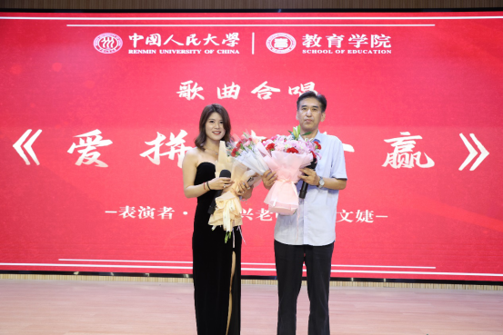 回忆童年的歌声过后,刘复兴老师与博士生惠文婕用经典歌曲《爱拼才会赢》鼓励青年人谨记拼搏的力量,靠自身努力克服困难、获得成就。
