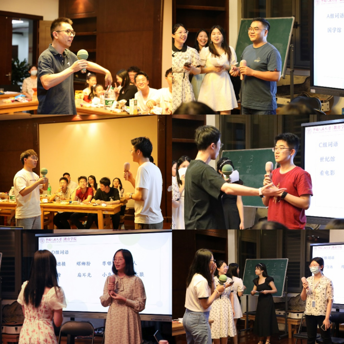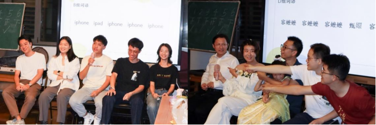 两首动人的歌曲过后,联欢会迎来了第一个游戏环节——“你划我猜”。师生参与热情高涨,现场欢声笑语不断。老师之间的巧妙配合让大家领略到了多年工作伙伴的心有灵犀,新同学之间的精彩搭档也让大家有目共睹,属于新一届教院人的默契正在悄然搭建。