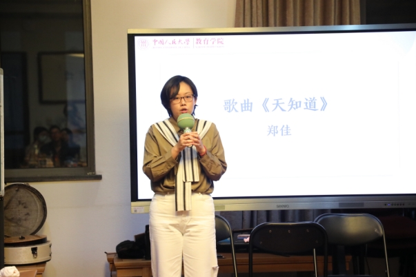 欢笑之后,李一诺等同学为大家带来了合唱《漂洋过海来看你》。从五湖四海而来,于人大教院相聚,婉转的歌声诉说着相逢的难得与不易,让我们更加感动于这珍贵的相遇之缘。曲至高潮,引发了全场大合唱,正如汇聚在一起的歌声,每一个教院人汇聚于此,携手前行。