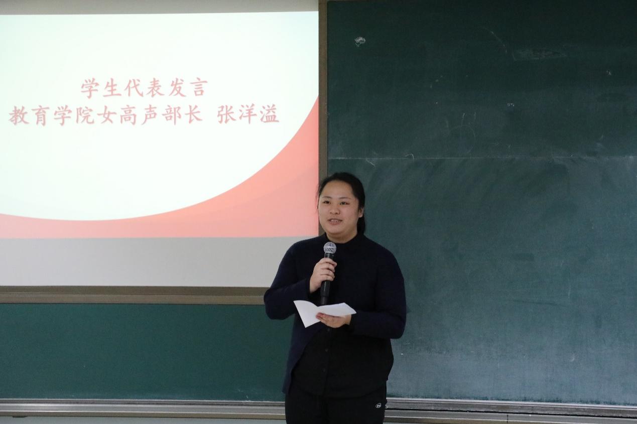 (女高音声部长张洋溢同学发言)