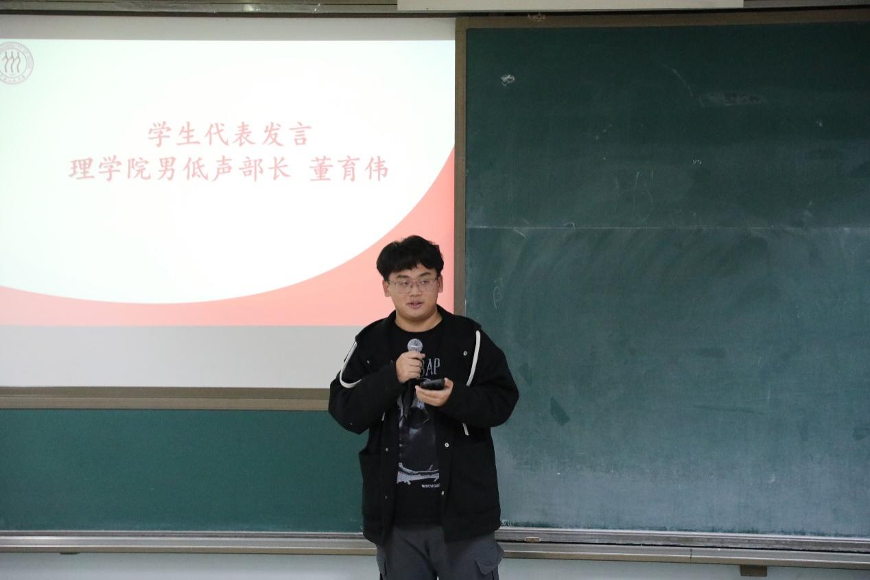 (男低音声部长董育伟同学发言)