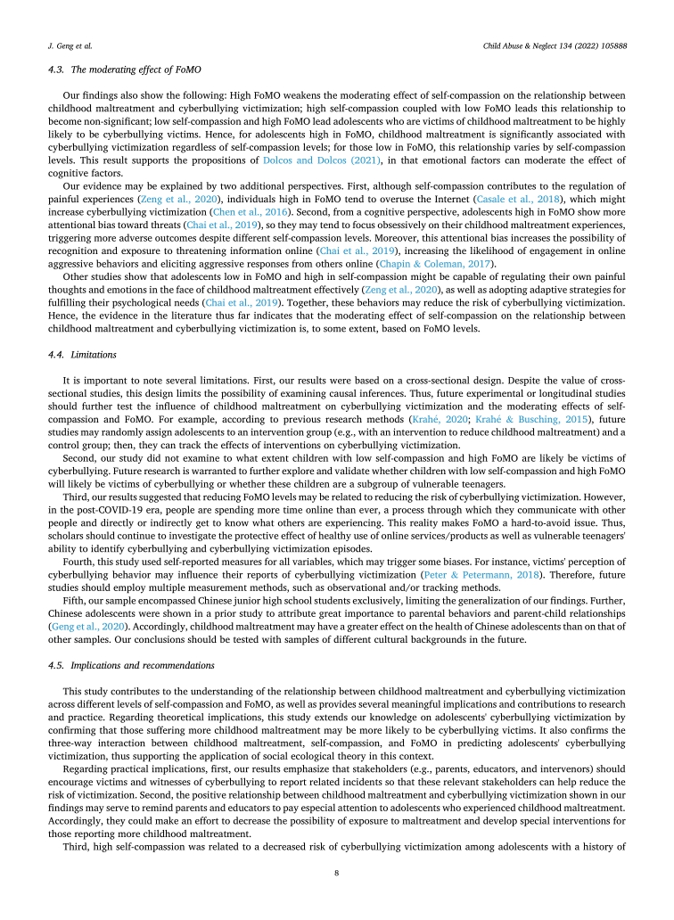 Keywords:Childhood maltreatment; Cyberbullying victimization; Self-compassion; Fear of missing out